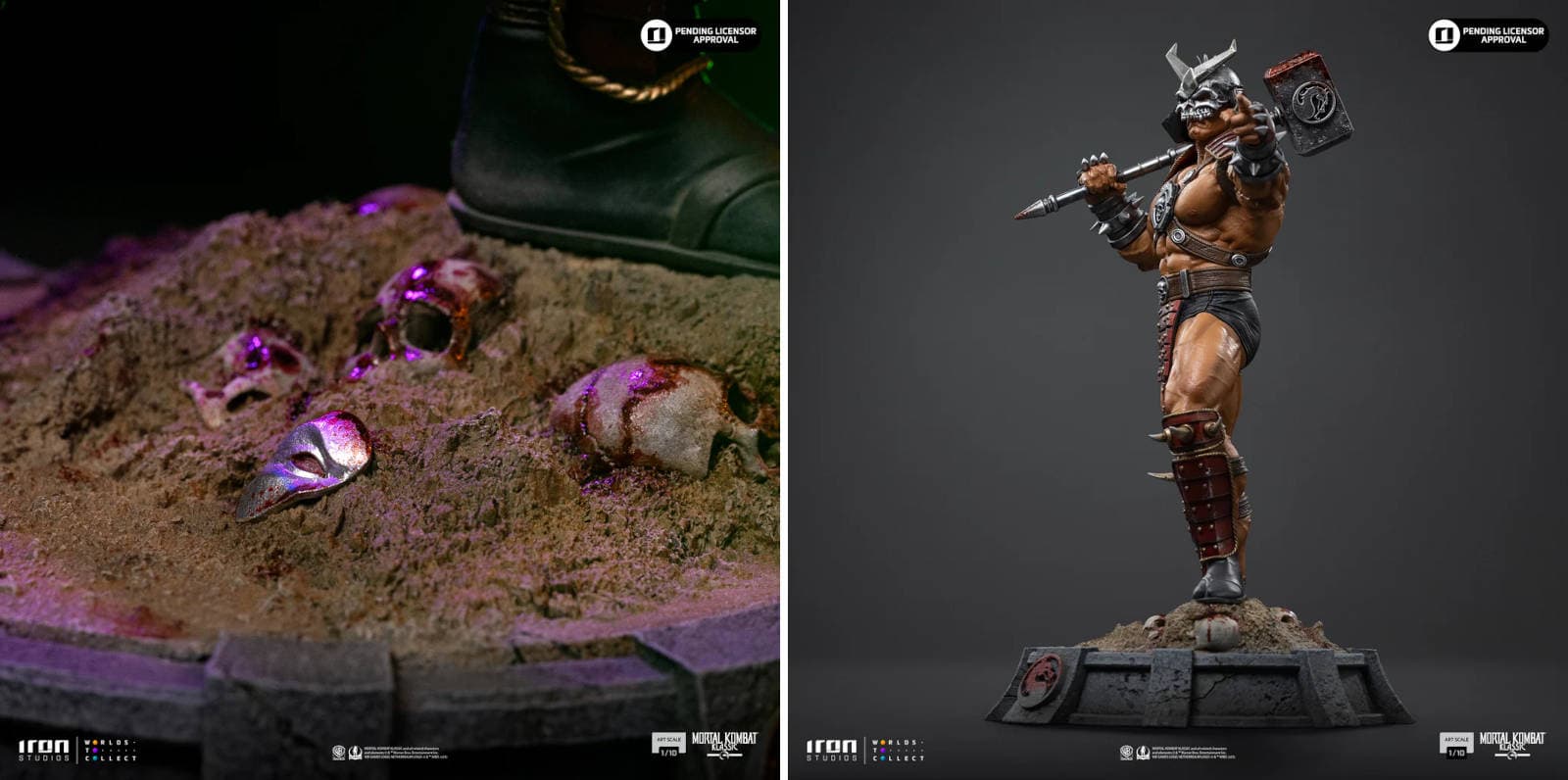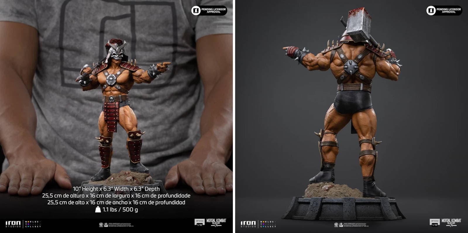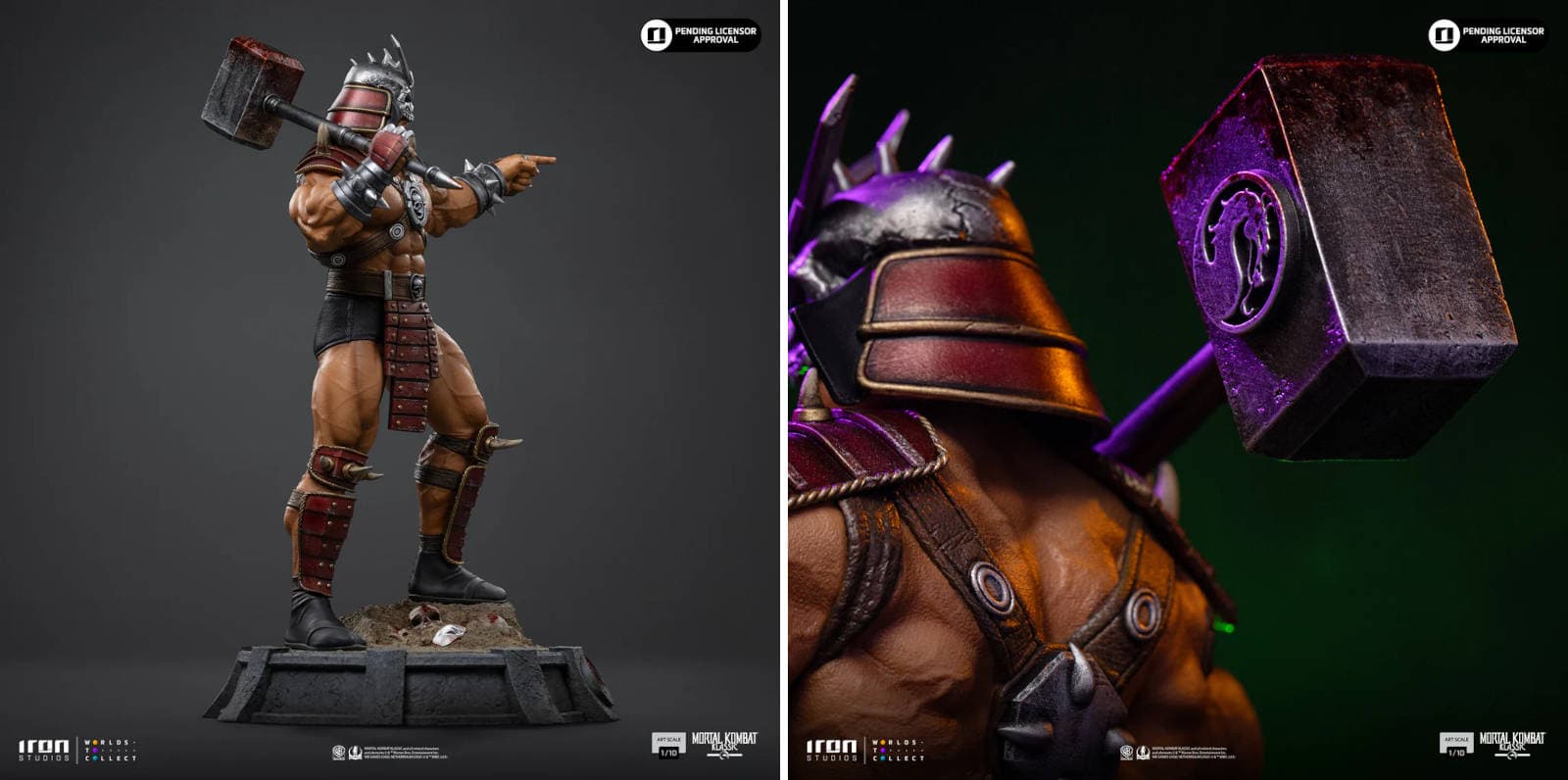 The sculptors captured the bloodthirsty tyrant from Outworld in a threatening pose. Known for his cruelty, colossal strength, and boundless ambition, this character seeks to conquer worlds and subjugate enemies. Armed with a massive war hammer, he remains one of the most iconic villains in video game history.