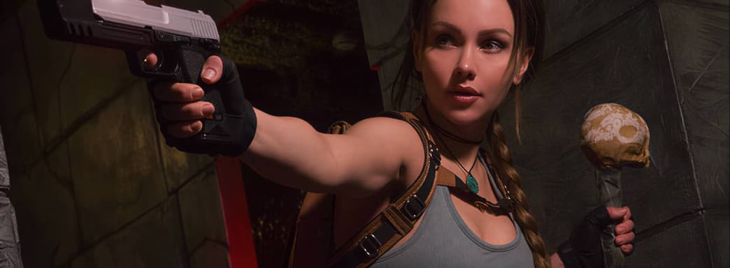 Model Alyona Mart transformed into Lara Croft from the adventure action game Tomb Raider: Legacy of Atlantis to visit various corners of the world, explore tombs, and find parts of the Legacy - an artifact of immeasurable power.