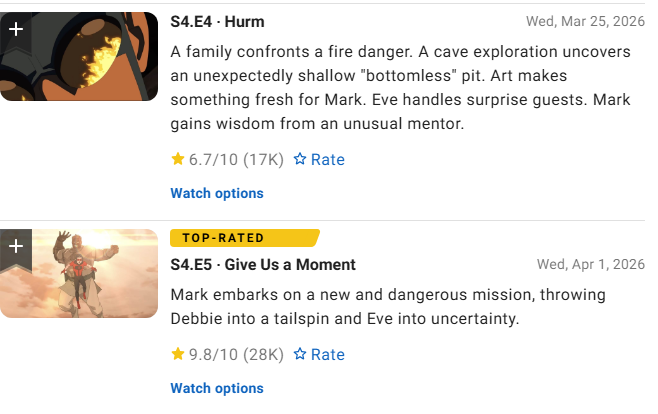 The fifth episode of the fourth season of "Invincible" has become one of the highest rated in the history of the series. According to IMDb, the episode titled Give Us a Moment received 9.8 points out of 10, second only to the third season finale with a score of 9.9.