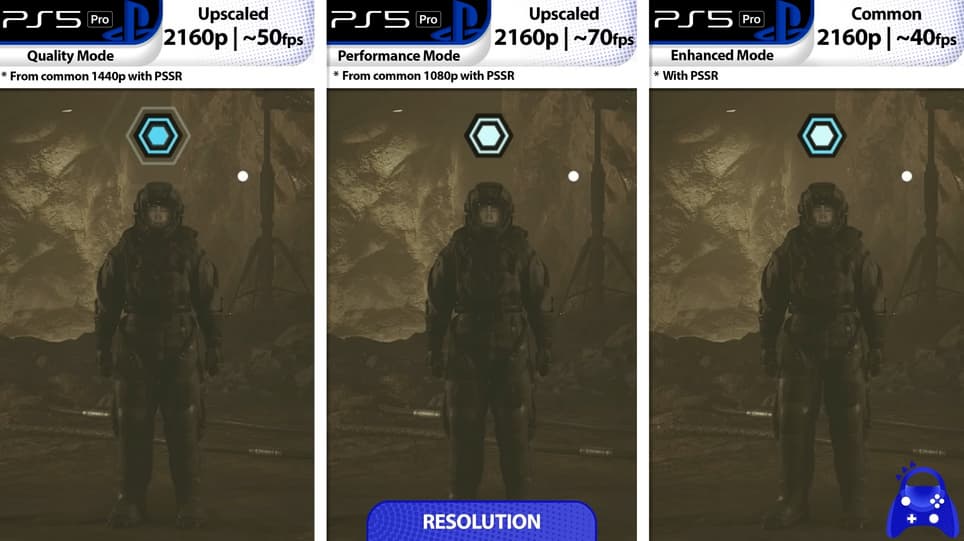 Enhanced on PS5 Pro works in 2160p with PSSR, Quality – 1440p, Performance – 1080p. The difference between Enhanced and Quality is noticeable, but not revolutionary: shadows and the ambient occlusion effect are slightly improved. The main problem is performance. Starfield is demanding on the CPU, and stable 60 FPS is not always maintained in places with many objects and NPCs.