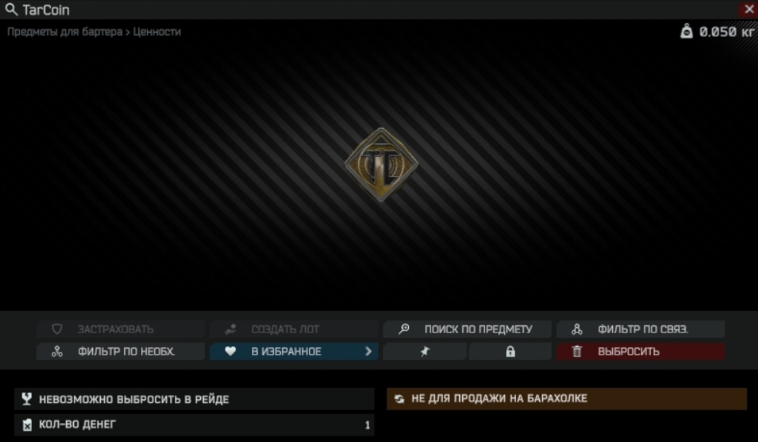 A mysterious currency that appeared in Tarkov after the start of the Contract Wars. The motto stamped on the coin refers to a certain well-known company... A rare item, valued by absolutely everyone.