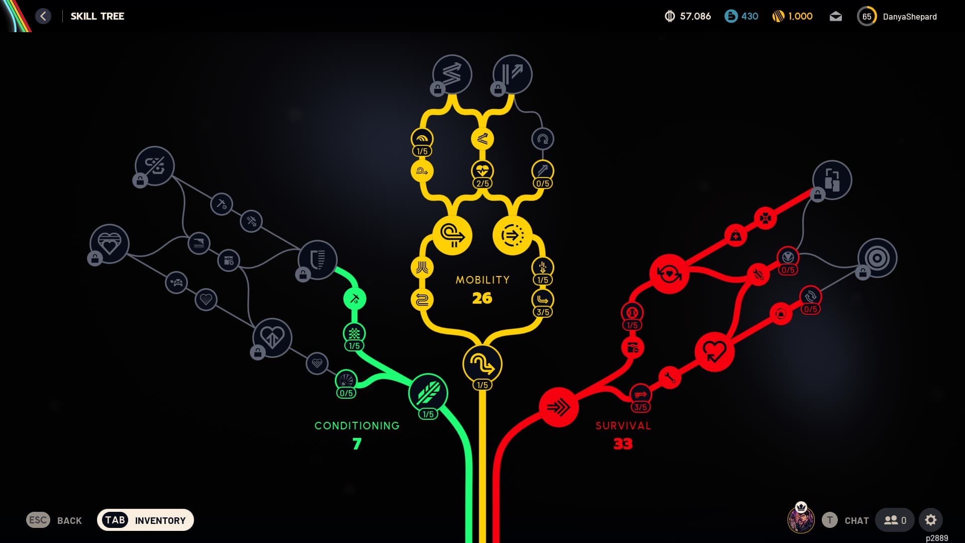 - Red branch — stealth, loot detection, and resource gathering efficiency.