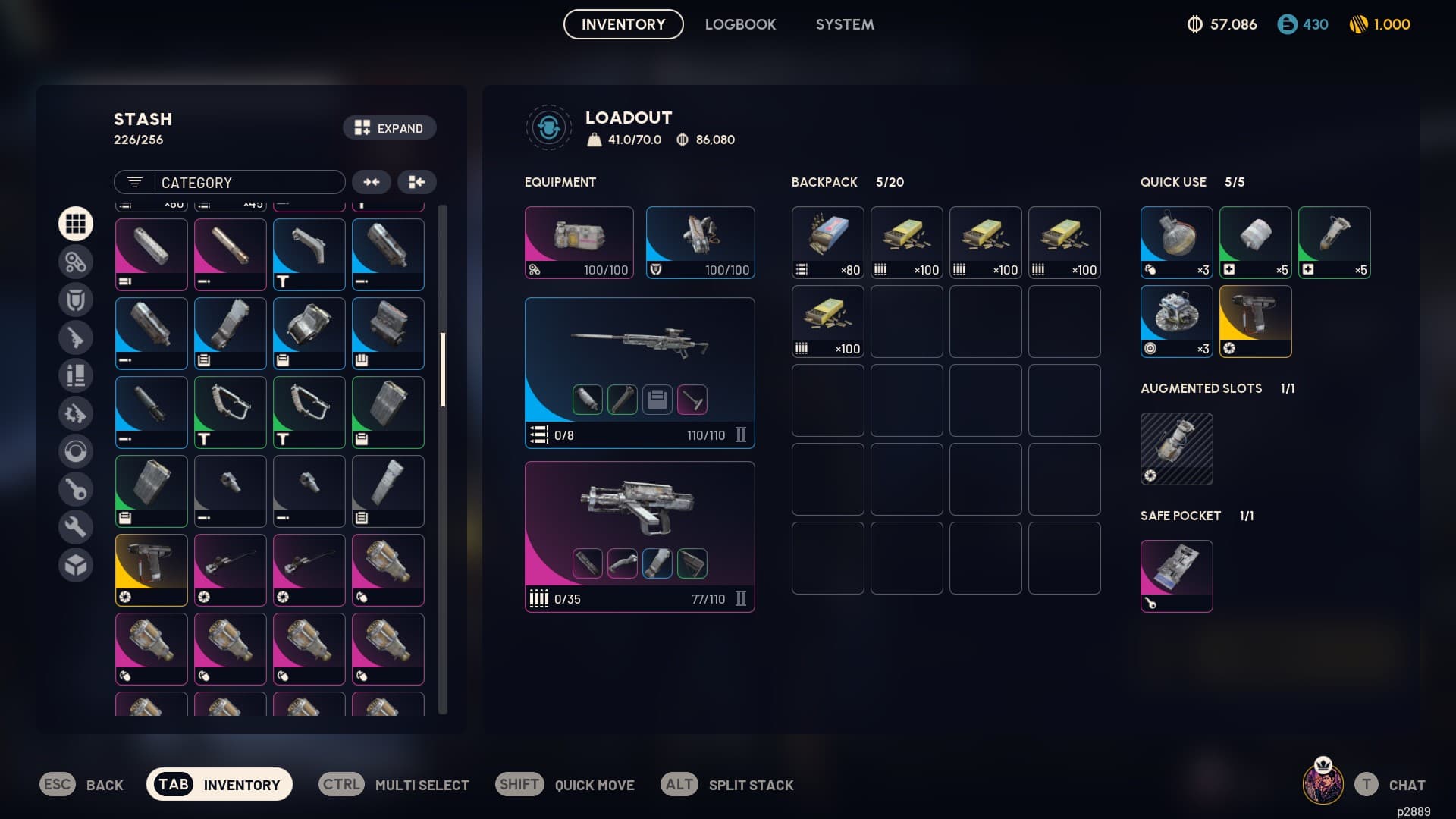 The basic set of equipment includes an energy shield, two slots for weapons, several slots for consumables, and an augmentation — a key element that determines the style of your raider. It is the augmentation that sets the structure of the inventory and compatibility with shields.