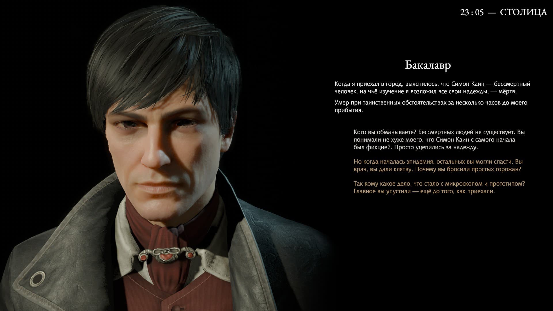 Initially, the inspector does not allow you to move to other days, motivating this by the fact that everything is already clear with Dankovsky. You need to get rid of the status of a coward, and lead the fight against the plague that has engulfed the city – then some of the charges will be dropped, and you will be allowed to change old deeds and commit new ones.