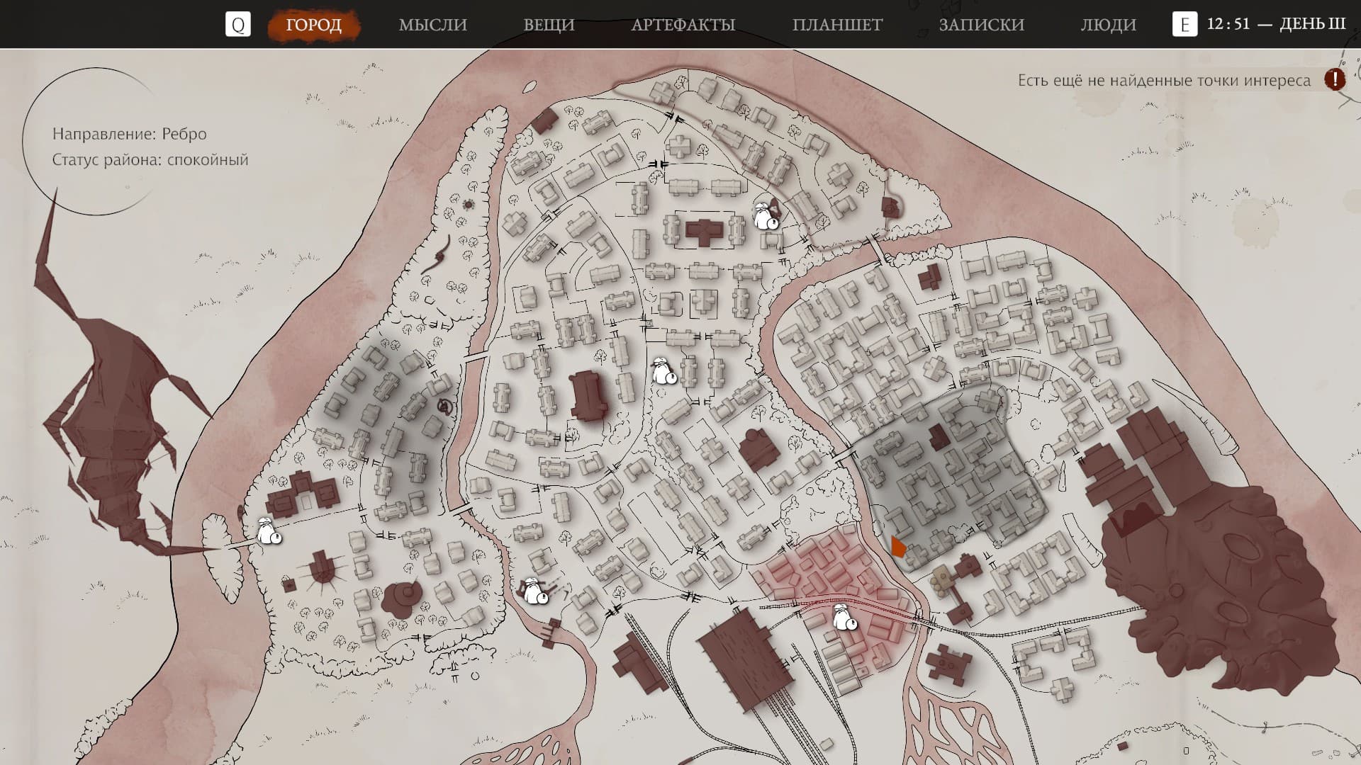 A convenient map of thoughts helps to understand the events. It marks the events that have occurred, and how they affect subsequent days. On the fifth day, the game went crazy – the events began to contradict each other. I helped a boy named Match find the killers of an important character, but this act was ignored by the game.