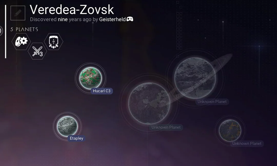 «Este era el más antiguo de los objetos que había descubierto. Ambos planetas fueron descubiertos por la misma persona que descubrió el sistema […] Envié mi nave para escanear el sistema y esto cambió por completo el tipo de dos planetas ya descubiertos; ahora se indica que supuestamente yo los descubrí. Es algo triste».