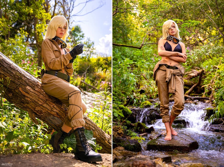Durante la sesión de fotos, la cosplayer se presentó en la imagen de Eva del remake de Metal Gear Solid 3: Snake Eater.