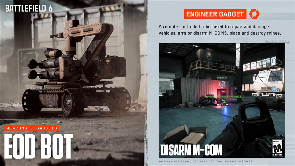 Los desarrolladores mostraron un avance del juego con el robot en acción: puede desempeñar no solo el papel de zapador, sino también ayudar a reparar equipos y averiar los del enemigo; es capaz de lanzar minas.