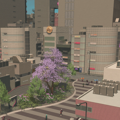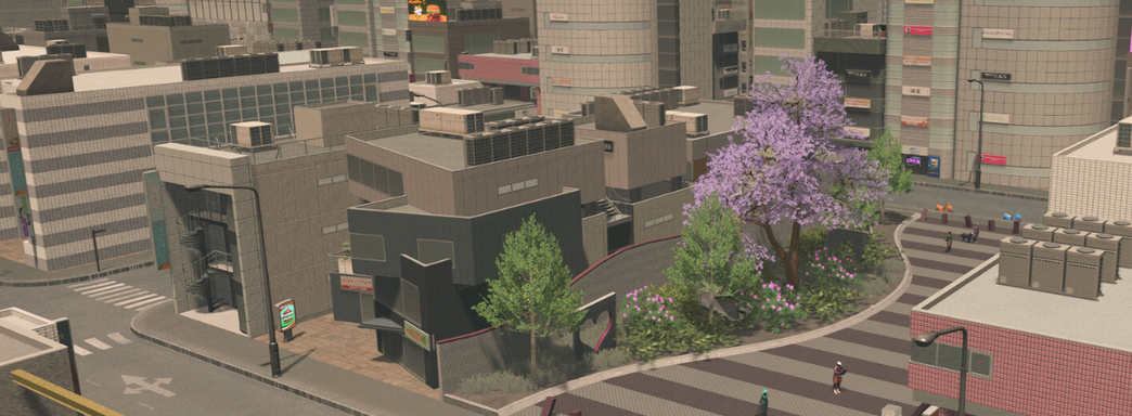Content Creator Pack: Shops of Shibuya incluye varias construcciones únicas, 2 parques, 27 construcciones ampliables para distritos comerciales de baja y alta densidad, así como 47 objetos temáticos.