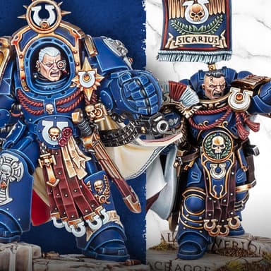 El equipo mostró al maestro de la orden de los Ultramarines, Marneus Augustus Calgar, con la armadura de exterminador "Armadura de Antilochus" y con los puños de poder "Guanteletes de Ultramar".