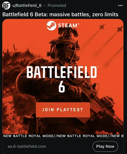 En la publicidad, los hackers prometen participación gratuita en las pruebas de Battlefield 6. La idea es que el jugador (víctima) acceda a través de la publicidad a un sitio web llamado "ea.6-battlefield", cuyo diseño es difícil de distinguir del oficial, y luego sea redirigido a otra página falsa llamada "store.steampowered.joinedplaytest".