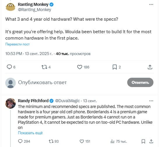 El jefe de Gearbox continúa respondiendo activamente a las críticas en las redes sociales. Los jugadores están descontentos con el rendimiento extremadamente pobre de Borderlands 4, y Randy Pitchford publica decenas de mensajes en defensa del proyecto.