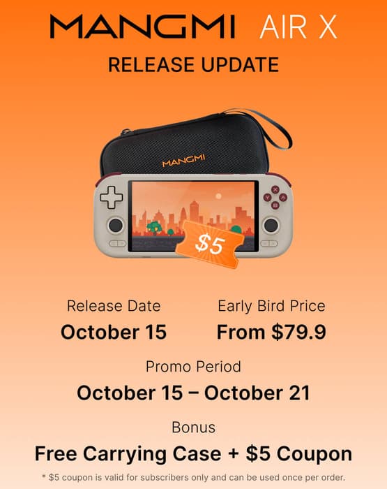 Mangmi ha fijado una nueva fecha de lanzamiento para la consola portátil Air X. Se ha anunciado que su lanzamiento está previsto para el 15 de octubre de 2025.