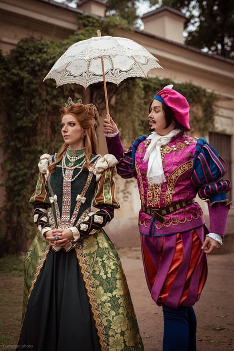 Durante su sesión de fotos, los cosplayers Marshal Giltenkreuz y Evge-Nii Admiral se transformaron en personajes del juego de rol y acción The Witcher 3: Wild Hunt, como la duquesa de Toussaint, Anna-Henrietta, y el bardo más famoso del Norte, Jaskier.