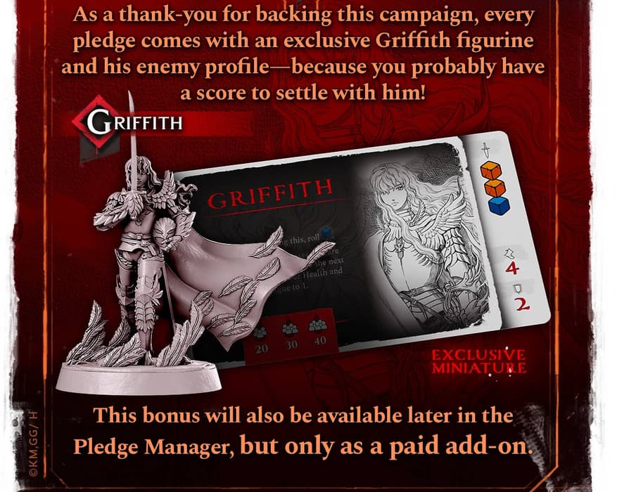 Las personas que preordenen este juego de mesa, que está diseñado para 1-5 personas, recibirán una miniatura de Griffith como regalo.