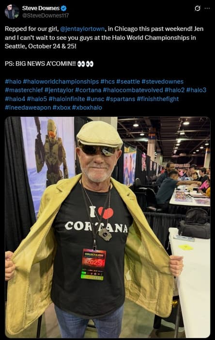 El actor de voz Steve Downes, quien dio su voz al Jefe Maestro en la serie de shooters Halo, declaró que en el campeonato mundial de Halo, que se celebrará del 24 al 25 de octubre en Seattle, se hará un anuncio importante. Downes no entró en detalles.