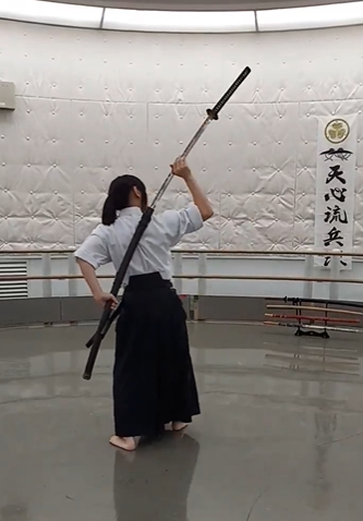 La longitud de una odachi comienza a partir de los 90 centímetros y pesa alrededor de 1,5 kg. Atsu extrae esta arma de una posición compleja: lleva la odachi a la espalda. Resulta que este movimiento específico es bastante realista de repetir en la vida real.