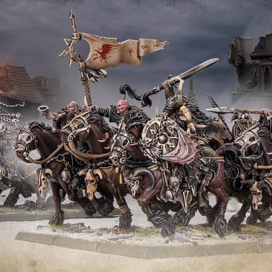Los 10 Jinetes Merodeadores de esta caja permitirán ensamblar dos unidades de cinco hombres cada una, cada una con su propio grupo de mando: campeón, músico y portaestandarte.