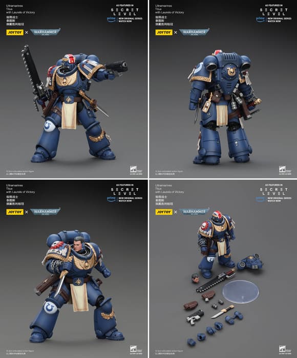 En diciembre, los coleccionistas a quienes les gustó el quinto episodio de la serie "Nivel Secreto", dedicado a Warhammer 40,000, podrán obtener de la compañía JoyToy figuras de Ultramarines como Titus, Thorvald, Leventus y Metaurus.