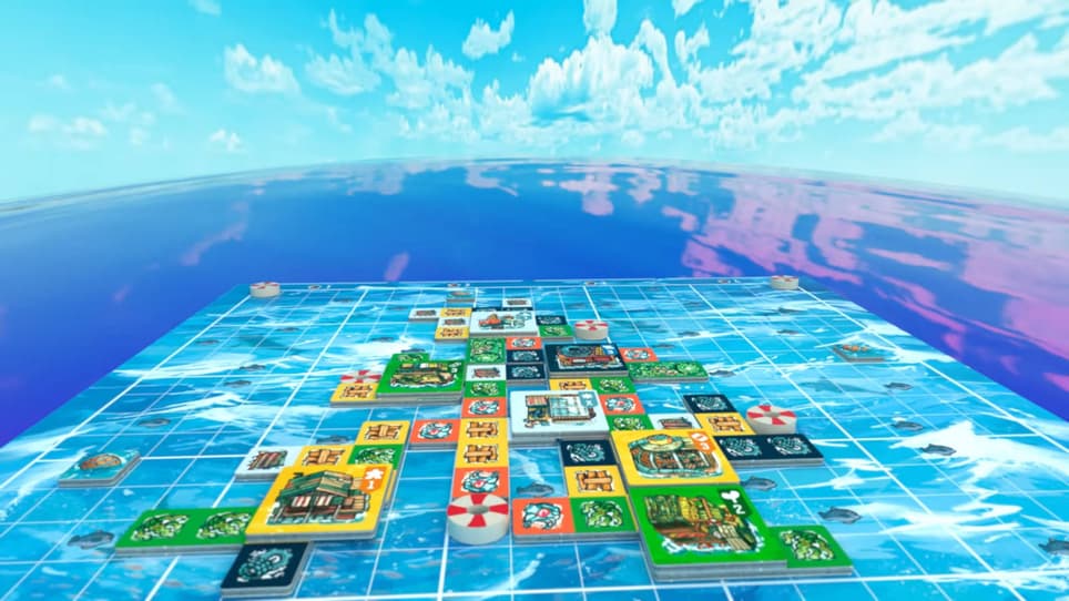 Los jugadores jugarán fichas, ampliarán su asentamiento, gestionarán los recursos, construirán edificios y guiarán a los supervivientes por plataformas de metal oxidado y madera a la deriva.