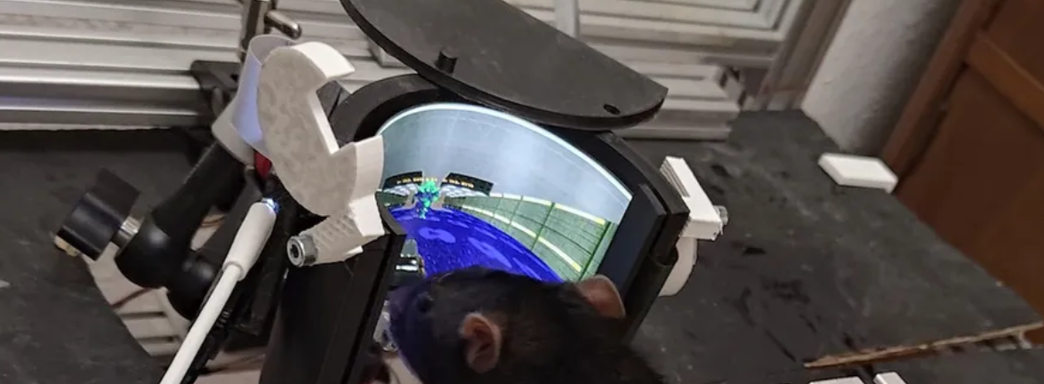 El entrenamiento de ratas para jugar DOOM II se llevó a cabo utilizando una instalación de realidad virtual: un AMOLED curvo proporciona un ángulo de visión de 180 grados horizontalmente y 80 verticalmente, con resolución Full HD.