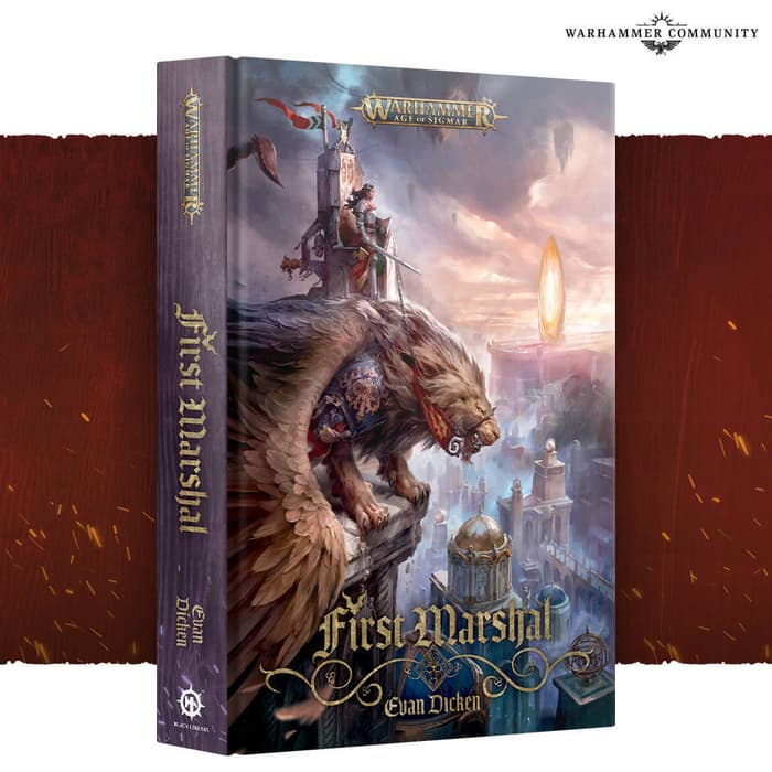 Los empleados de la editorial Black Library presentaron un nuevo libro del universo Warhammer Age of Sigmar de Evan Dicken titulado "Primer Mariscal" (First Marshal).
