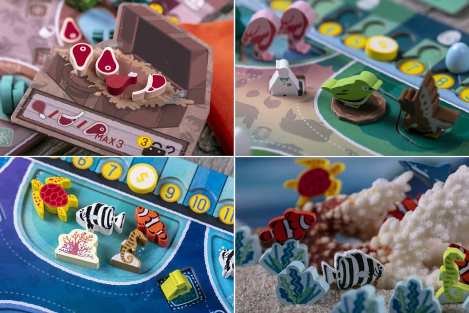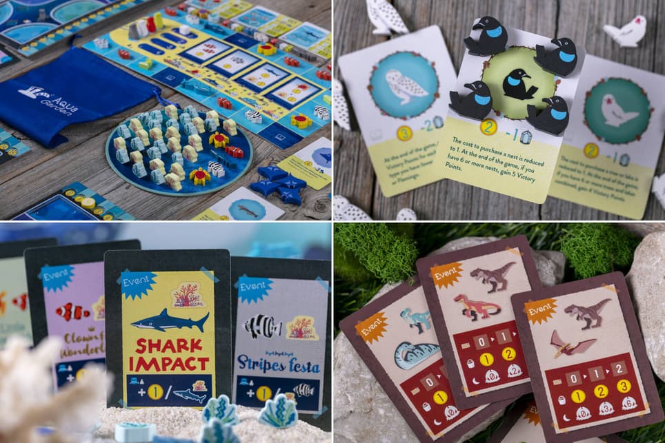 Gracias a estos juegos de mesa, diseñados para 1-4 personas, los participantes podrán crear sus propios acuarios, aviarios y dinoparques, conseguir muchas fichas de madera coloridas, apreciar los tableros de doble capa y ver partidas que duran entre 60 y 90 minutos.