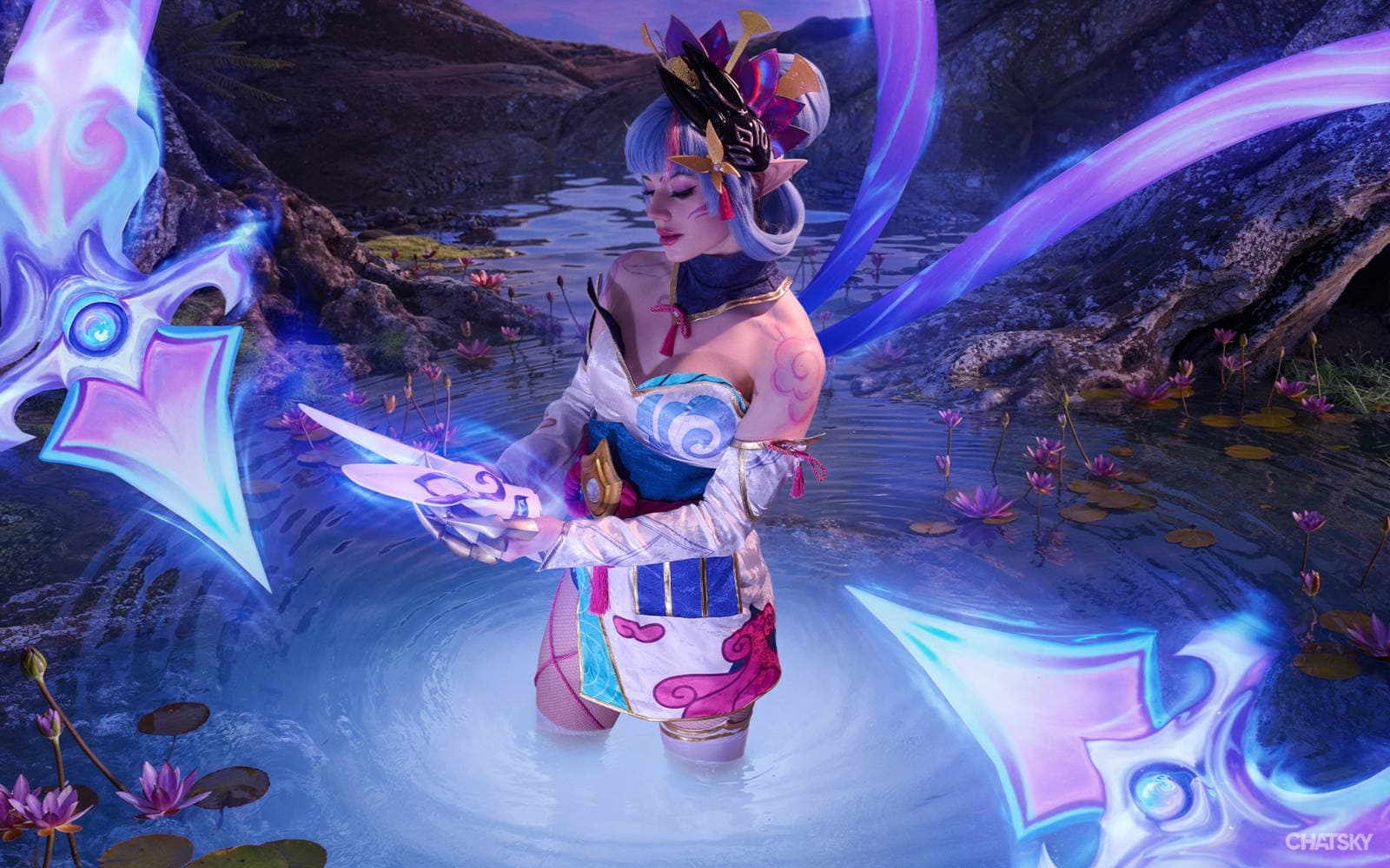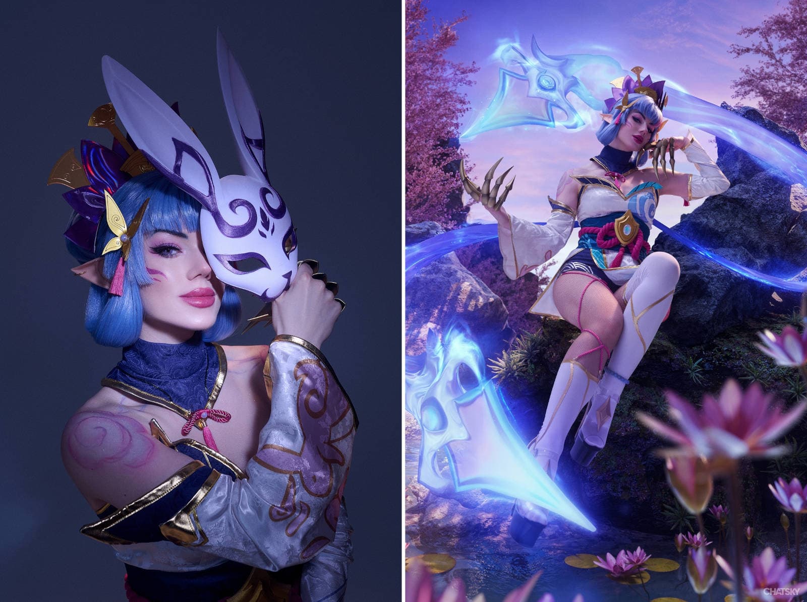 La fotógrafa CHATSKYPHOTO y la cosplayer Ksenia "KamikoZero" Beknazarova han preparado un nuevo regalo para los fans de MOBA League of Legends. Esta vez, la modelo se ha transformado en Evelynn, usando el skin "Flor Espiritual".