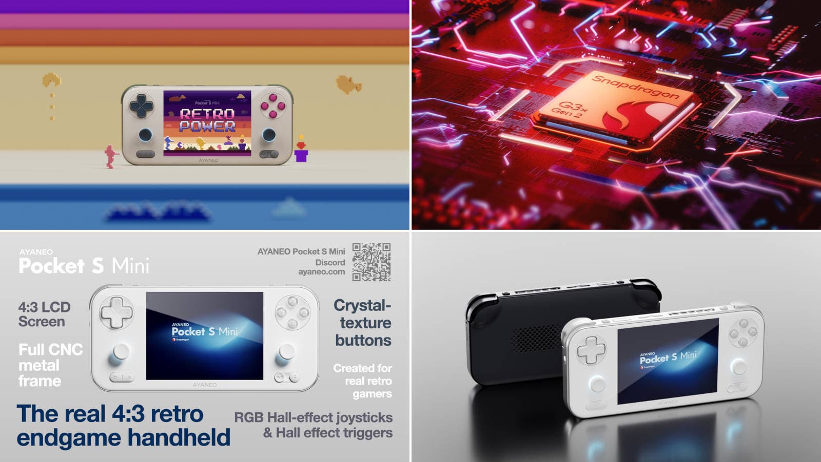 La Ayaneo Pocket S Mini estará equipada con una pantalla LCD con una relación de aspecto de 4:3, un procesador Snapdragon G3x Gen 2, marcos metálicos, así como sticks y gatillos con sensores Hall.