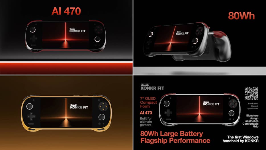 Se ha dado a conocer que la Konkr Fit, basada en el sistema operativo Windows, recibirá un chip AMD Ryzen AI 9 HX 470 (12 núcleos / 24 hilos, gráficos integrados Radeon 890M en arquitectura RDNA 3+), un agarre ergonómico y cómodo, una batería de 80 Wh, una pantalla OLED de 7 pulgadas y un diseño característico.