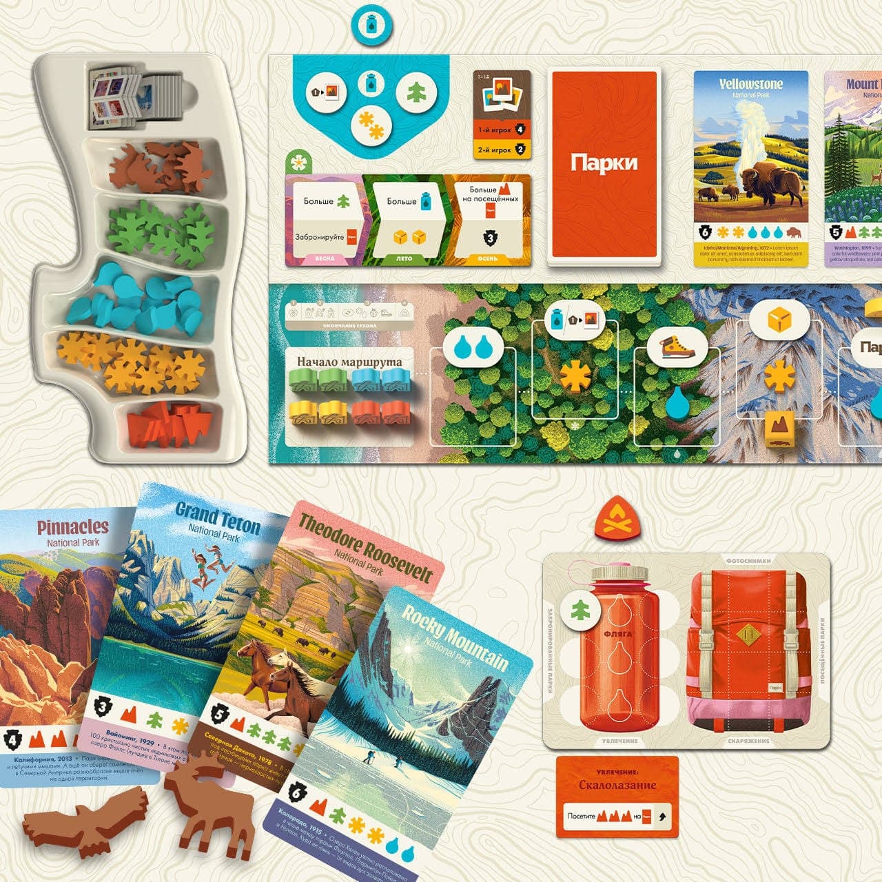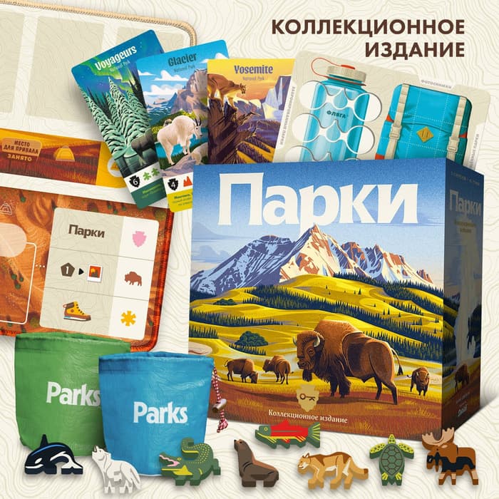 Los jugadores de Rusia podrán disfrutar de la segunda edición del juego de mesa "Parques", que ha recibido un nuevo diseño y todos los mejores elementos de las expansiones de la primera edición. Los jugadores podrán convertirse en turistas, disfrutar de las maravillas naturales de los parques nacionales de EE. UU. y conocer a los animales.