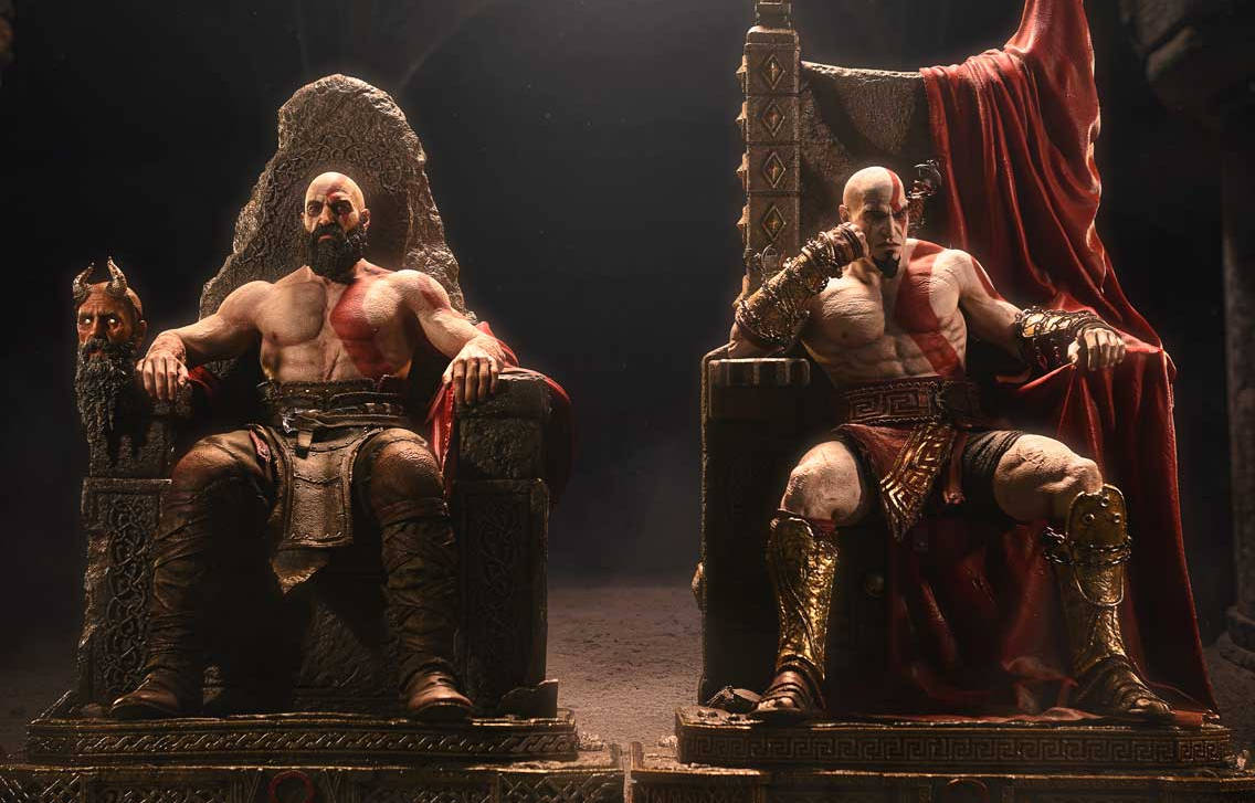 En 2027, los empleados de Prime 1 Studio lanzarán costosas estatuas del Kratos joven y viejo del complemento Valhalla para el juego God of War Ragnarok, quien durante sus locas aventuras logró aplastar a muchos dioses.