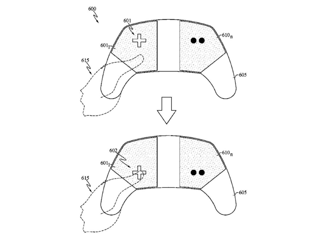 В патенте также упоминается возможность совмещать разные типы управления на одной стороне геймпада. К примеру, часть сенсорной поверхности может работать как крестовина, а соседняя — как аналоговый стик. Кроме того, система способна распознавать жесты: свайпы, щипки и скольжения, фактически превращая устройство в гибрид геймпада и трекпада.