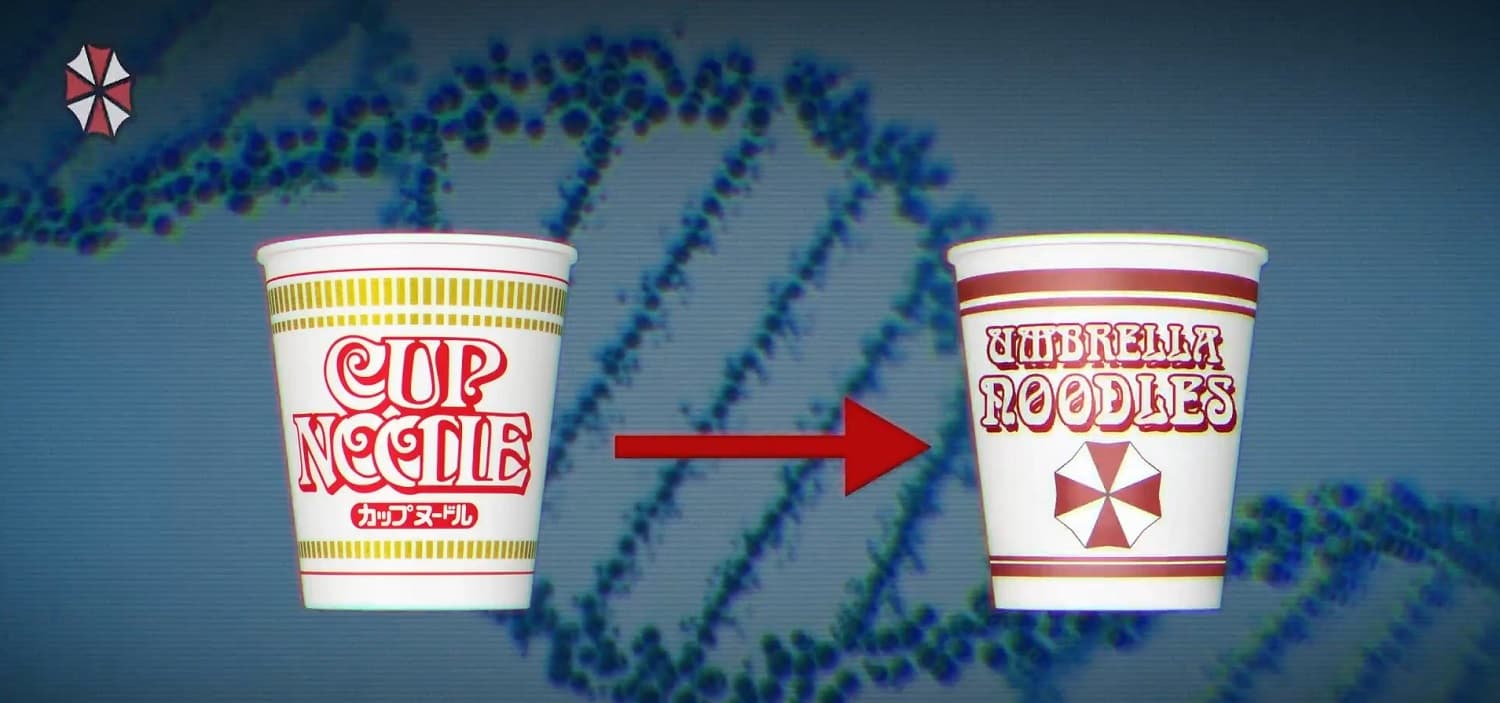 En una colisión legal ficticia del universo de Resident Evil, la corporación Umbrella Corporation demandó a Nissin Foods Co., Ltd., acusando al fabricante de fideos instantáneos de violar los derechos de propiedad intelectual.