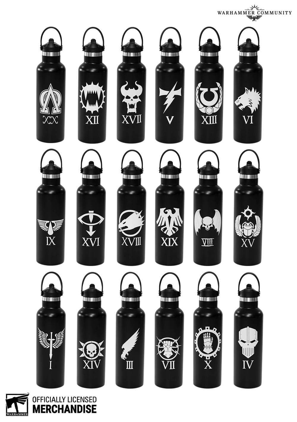 Las personas que respetan la «Herejía de Horus» finalmente podrán saciar su sed, ya que Games Workshop ha comenzado a vender merchandising oficial: cantimploras decoradas con símbolos de varias legiones. Cada cantimplora costará 31,95 euros (2907 rublos).