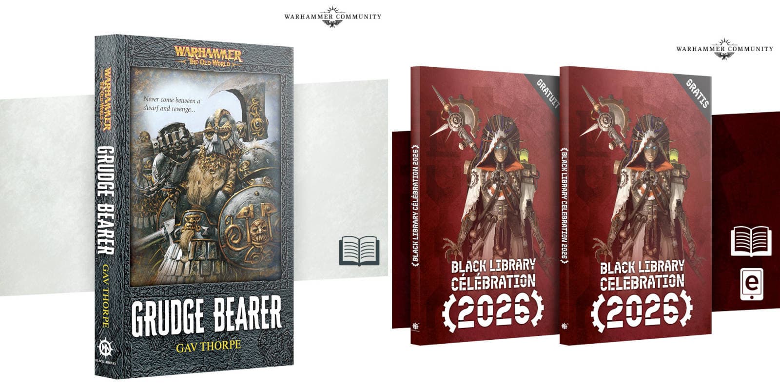 En tapa blanda también regresará la reedición de "Deathwatch" de Steve Parker. El libro "Presentación de agravios" de Gav Thorpe volverá a estar en las estanterías. Entre otras cosas, se podrá conseguir la antología "Black Library Celebration 2026", que contiene una selección de cinco historias emocionantes de los mundos de Warhammer 40,000 y Age of Sigmar.