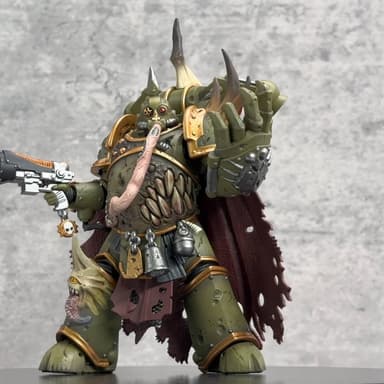 La altura de este guerrero, que obedece a Mortarion y adora al dios del Caos Nurgle, es de 12,2 cm, el ancho es de 7,0 cm. En su caja se puede encontrar un cuerpo con articulaciones, una pistola de plasma, un puño de poder, cepillos de mano intercambiables, una mochila y un soporte.
