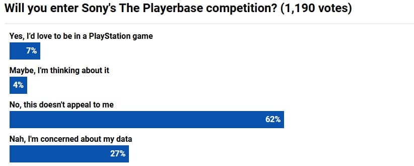 Una encuesta en PushSquare entre más de 1100 jugadores mostró una dura reacción: el 89% no tiene intención de participar en el programa. El 62% declaró directamente que la iniciativa no les interesa, y sólo el 7% expresó entusiasmo por la posibilidad de aparecer en el juego.