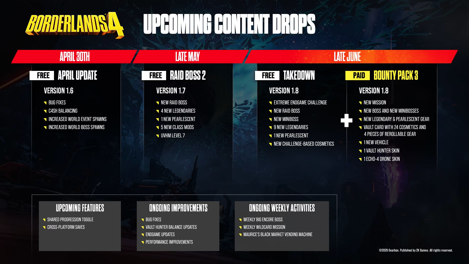 Los creadores de Borderlands 4 presentaron una hoja de ruta dedicada a las próximas actualizaciones.