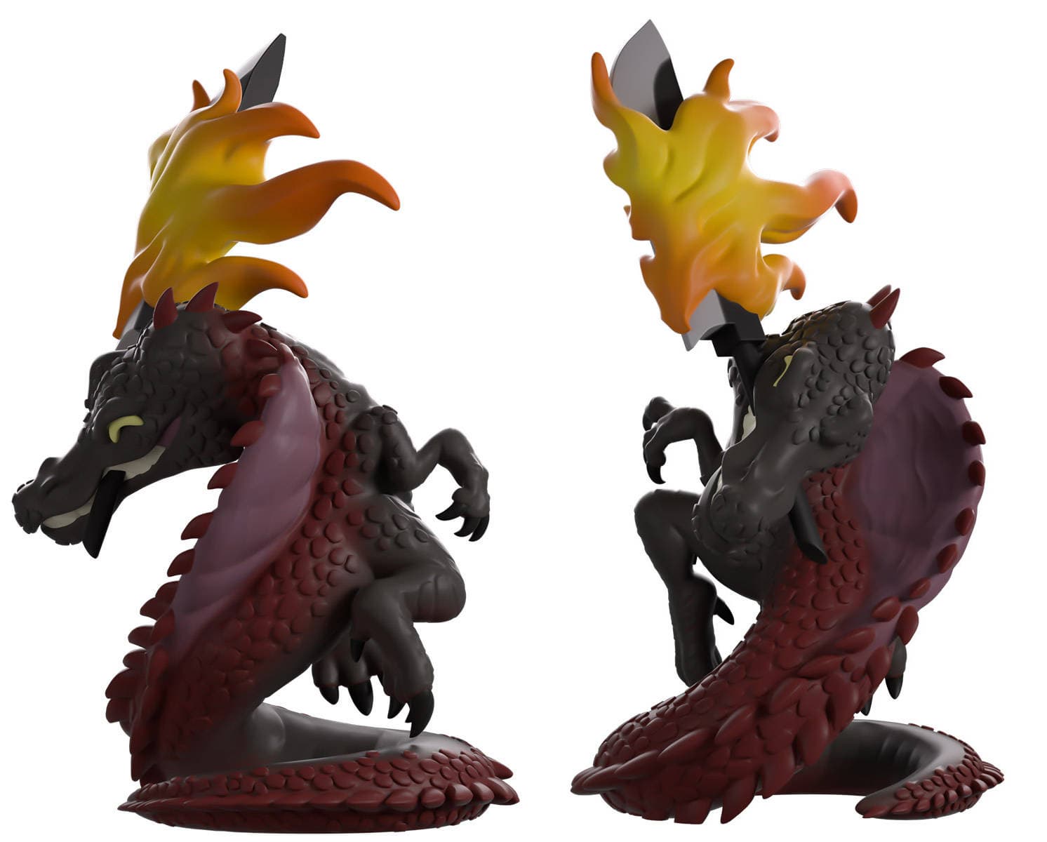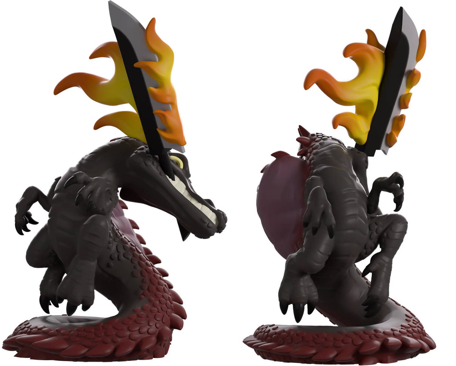 Se podra comprar la figura por $29,99 (2240 rublos). Los escultores capturaron el momento en que Spinosaurus se enrosca sobre su larga cola, preparandose para asestar un poderoso golpe con una espada llameante, sujetada entre sus afilados dientes.