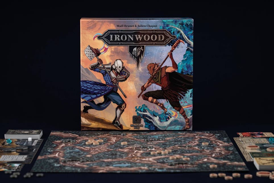 En Ironwood no hay tomos interminables de reglas: solo hay dinamismo, un elegante motor de cartas, un inusual control de territorios y dos facciones extremadamente asimétricas con distintas condiciones de victoria, posibilidades y ventajas.