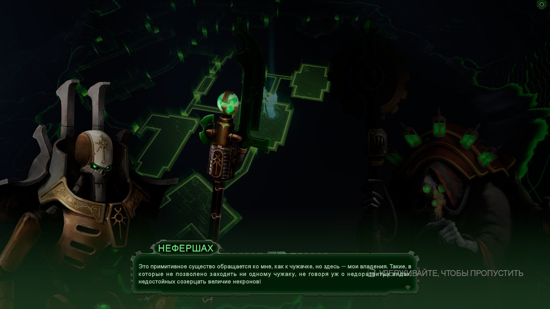 Por cierto, en el contexto del lanzamiento de la demo, estalló un escándalo en Internet entre los fanáticos de Warhammer 40.000. Dicen, ¿cómo es posible que los necrones estén representados por un individuo femenino que habla de sí misma como una mujer? ¿Otro intento de "agenda" ha llegado a Warhammer? Como ya se escribió anteriormente, entre los necrones, al renacer en esqueletos inmortales de hierro, había tanto hombres como mujeres. Nefershah no es la primera representante de ellos.