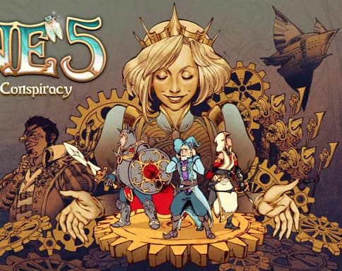 Очередная часть аркадной серии в сказочном стиле. В Trine 5: A Clockwork Conspiracy рыцарь Понтий, волшебник Амадей и воровка Зоя пытаются помешать механической армии установить новые правила в королевстве.