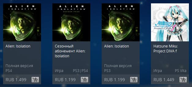 В этот раз владельцам PS3 и PS4 предлагают по скидке приобрести Alien: Isolation, а пользователям PS Vita - Hatsune Miku: Project DIVA f.