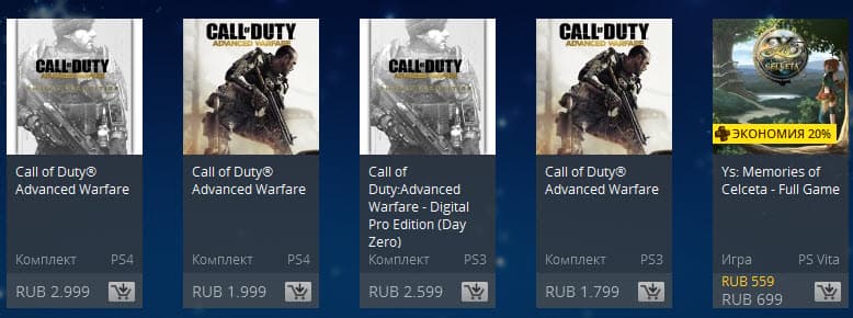 В этот раз владельцам PS3 и PS4 предлагают по скидке приобрести последний Call of Duty, а пользователям PS Vita - Ys: Memories of Celceta.