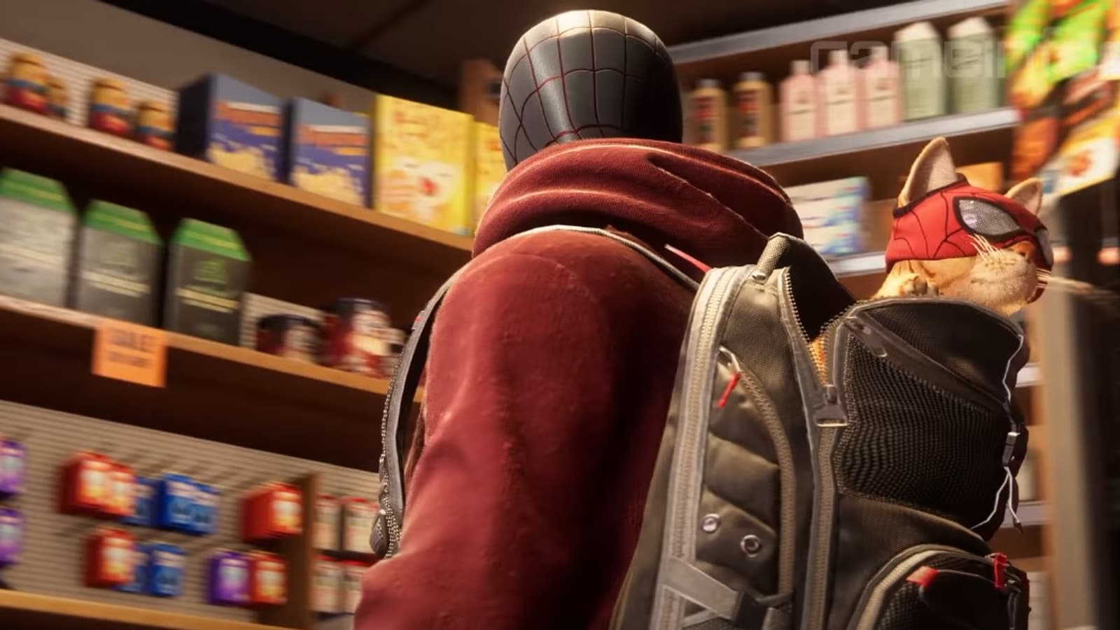 В одной из миссий Майлз может спасти рыжего котика, который станет компаньоном Человека-паука. Герой будет носить в рюкзаке питомца в маске паука.