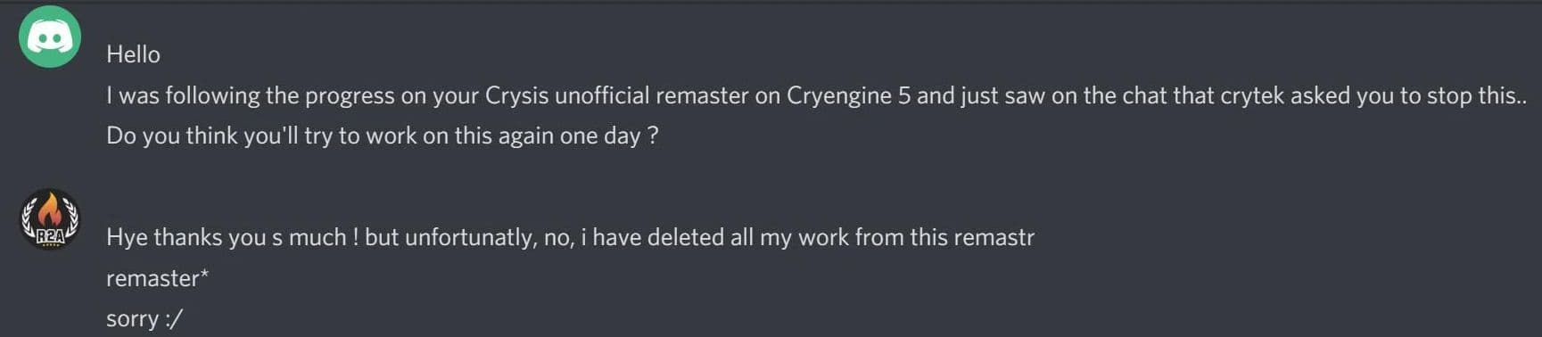 Однако создатель модификации обмолвился о том, что Crytek не одобрила проект. То есть фанатскому ремастеру не суждено увидеть свет.
