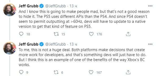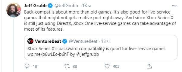 Джефф Грабб подчеркнул, что это то, что отличает Microsoft от Sony. В случае с Xbox можно рассчитывать на «безболезненный» перенос данных с Xbox One на Xbox Series X | S. Компания даже упростила перенос состояний игрового процесса с Xbox 360.