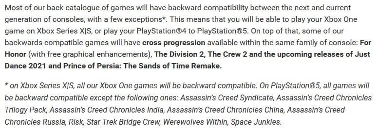 Компания Ubisoft опубликовала материал, посвящённый консолям нынешнего и нового поколений. В статье, в том числе затрагивается тема обратной совместимости игр.