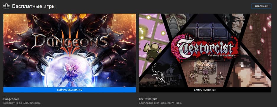 В магазине компании Epic Games стартовала бесплатная раздача стратегии Dungeons 3. Игра доступна бесплатно до 12 ноября, 19:00 по московскому времени. В Dungeons 3 игрокам предстоит строить и развивать подземелье.